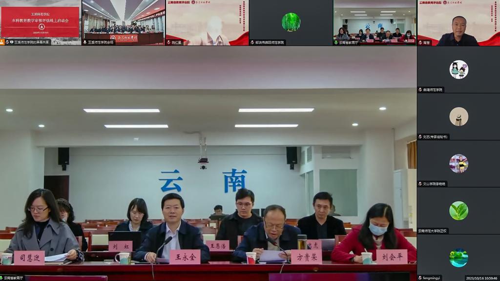 10月16日,玉溪师范学院新一轮本科教育教学审核评估线上评估启动会以线上线下相结合的形式召开,标志着云南省新一轮本科教育教学审核评估线上评估工作正式启动。专家组组长、南京师范大学原党委书记胡敏强,专家组副组长、常熟理工学院原副校长钱素平,专家组成员线上出席会议。