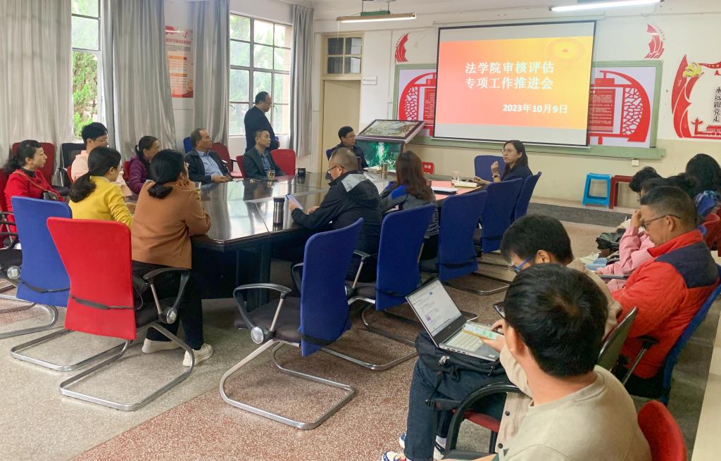 法学院党委行政高度重视本科教育教学审核评估工作,严格落实《玉溪师范学院本科教育教学审核评估工作方案》,本着“以评促建、以评促改、以评促管、以评促强”的方针,加强评建组织领导,抓实做细评建环节,发动全员参与,坚持持续改进,注重评建成效,坚持立德树人根本任务,办学以来秉持立足玉溪、服务云南,宽基础、重实践的指导思想,培养能够从事法务工作的应用型法律人才和融入基层社会治理的社会工作专业人才。学院经过多点建设,立足本土优势,彰显能力本位,科学构建特色鲜明的人才培养体系。现有法学、社会工作、老年学三个全日制本科专业,建设有“地方社会治理与服务教学实训中心”,含数字化模拟法庭实训平台、VR虚拟仿真实训室、个案工作实训室、智慧社区实训室、综合案例实训室、老年能力评估实训室、老年护理实训室等7个专业实训室;校外建设实习实践基地39个,充分满足法学、社会工作、老年学三个专业实习实训的要求。近三年来,法学院通过优化人才培养方案,创新实践教学模式,实现对口就业率不断攀升,考研率屡创新高,在高质量就业中积累了较为丰富的经验。
