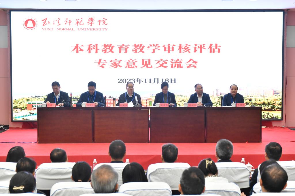 胡敏强代表专家组介绍线上、线下评估工作开展情况,围绕“办学方向与本科地位”“培养过程”“教学资源与利用”“教师队伍”“学生发展”“质量保障”等评估指标,集中反馈专家组对学校办学的总体印象和考察意见,指出学校办学的特色亮点、考察过程中发现的问题和不足、需要持续改进的方向和重点等,对玉溪师范学院本科教育教学工作提出中肯的意见建议。专家组成员依次反馈考察意见,指出现场考查过程中发现的不足并提出改进建议。
